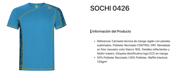 Se trata de una camiseta unisex de gran calidad, de la marca de reconocido prestigio Roly, 50% poliéster reciclado/50% poliéster, en color azul.